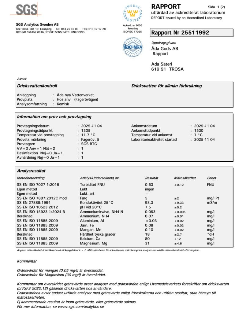 Åda Gods är den som sköter om dricksvatten systemet för ca 100 fastigheter.